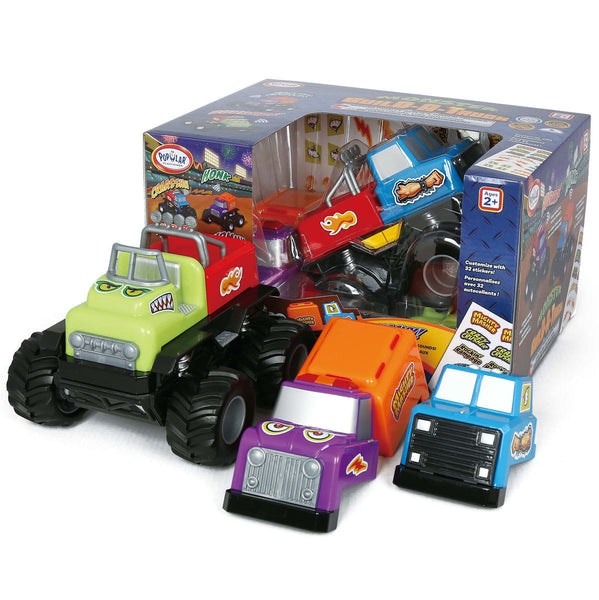 CUSTOMIZE WITH STICKERS: Personalize your monster truck with 32 included stickers, allowing kids to create one-of-a-kind designs and express their creativity.