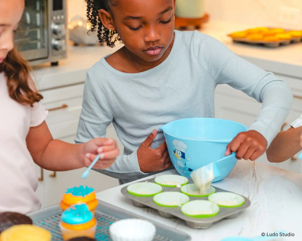 Get ready for fun in the kitchen with Bluey and her very own cooking set! This starter set for real kitchen use makes it easy for young chefs to measure and mix, so they can gain confidence stirring up their own culinary creations.