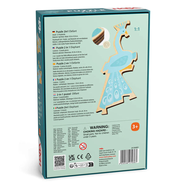 This delightful 12-piece Elephant 2-in-1 Wooden Puzzle from HABA delivers twice the fun with a different illustration on each side of the pieces to invite creativity, boost problem-solving skills, and provide an engaging challenge for curious young learners.